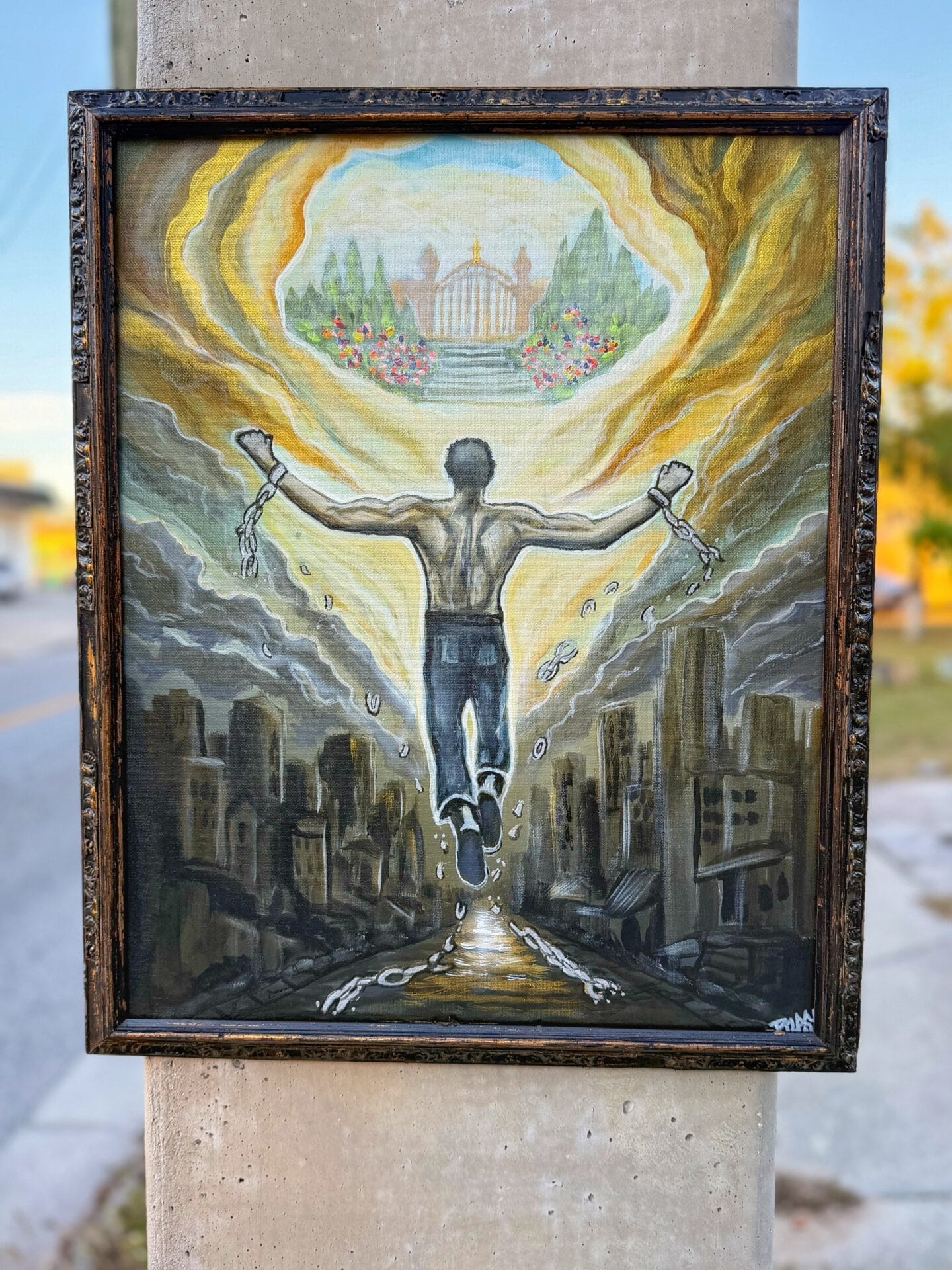 Acrylic on 16x20 canvas with custom distressed frame