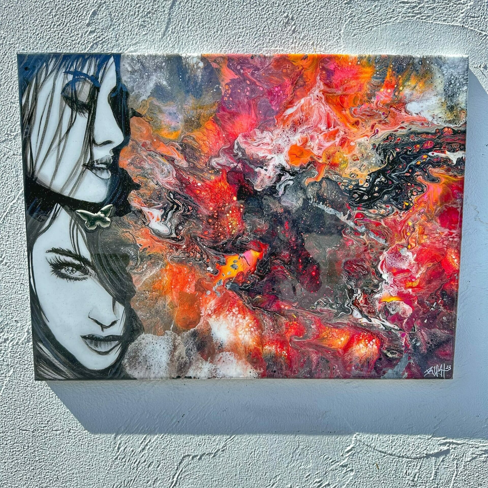 18x24 fluid art mixed with fine art with a glitter resin finish