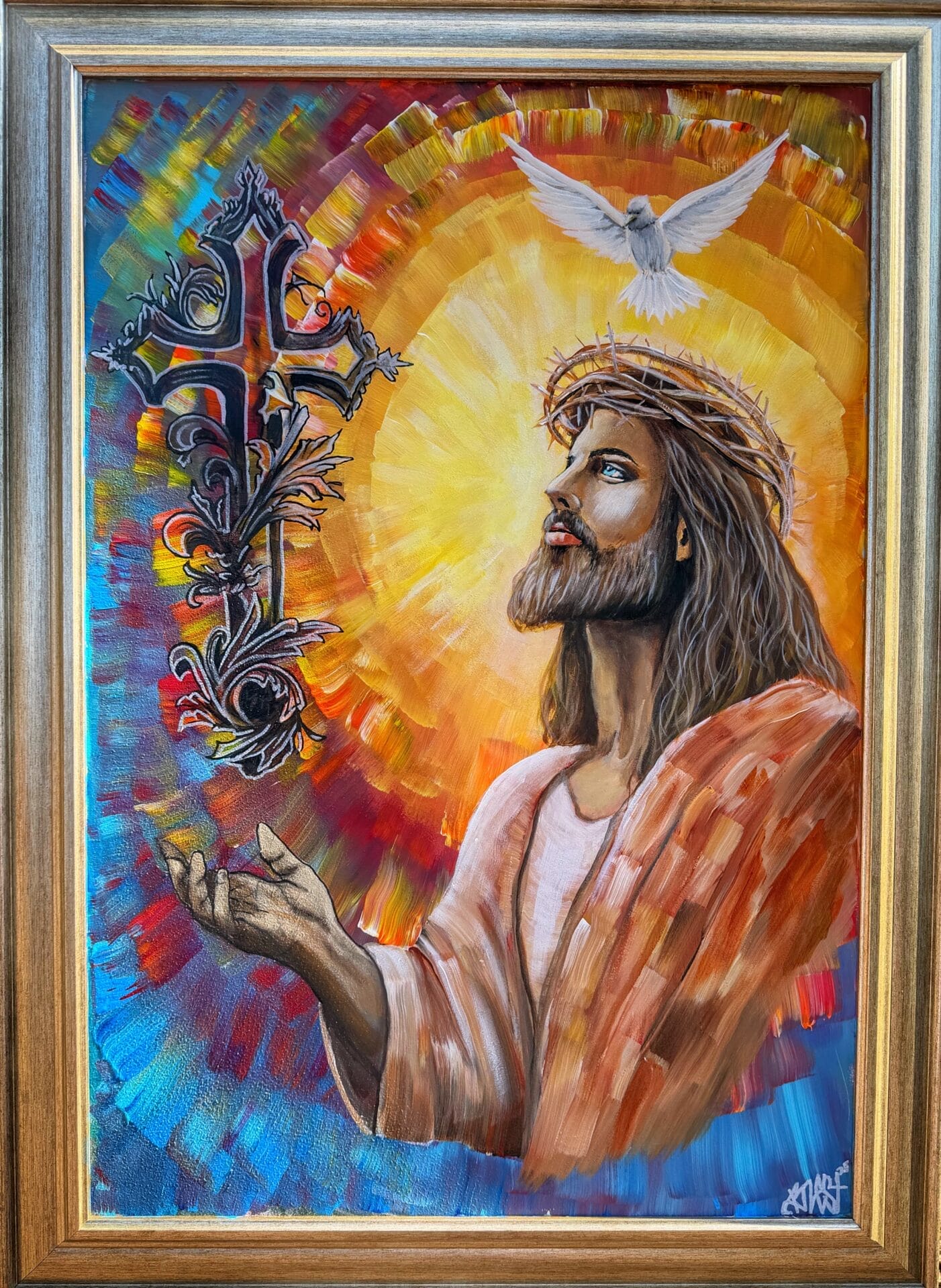 Acrylic on 2ft x 3ft framed canvas. Last painting of 2025 started 2024 with a painting of Jesus ended the year with a painting of Jesus on his Birthday. The reason for the season.
